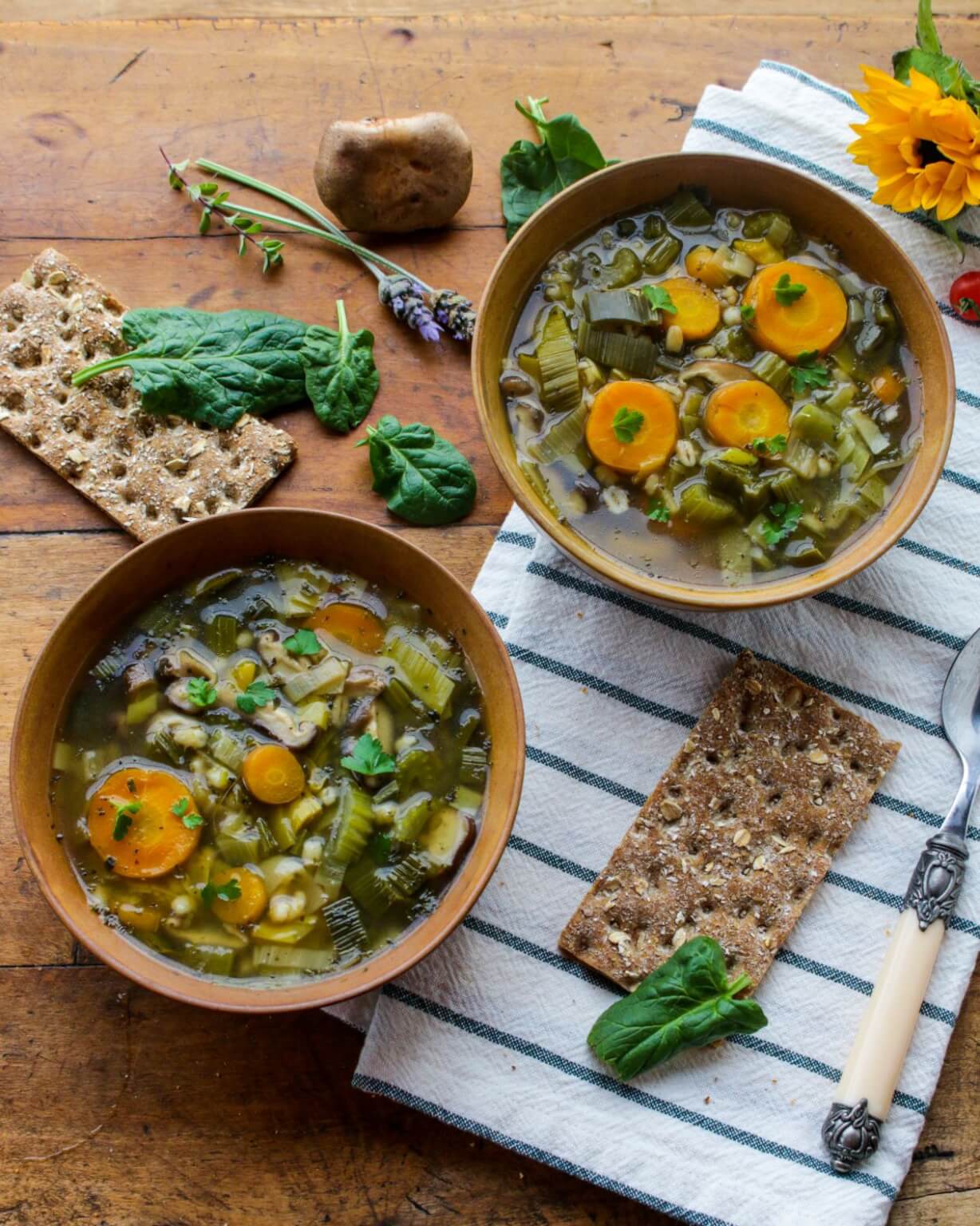 Turn to your Instant Pot to make an easy, healthy 8-ingredient soup in 30 minutes. This recipe for Instant Pot Vegetable Barley Soup calls upon the trifecta of onions, carrots, and celery. In addition, the soup has mushrooms, barley, and seasonings that give it a rich, comforting flavor, as well as strong nutritional profile.