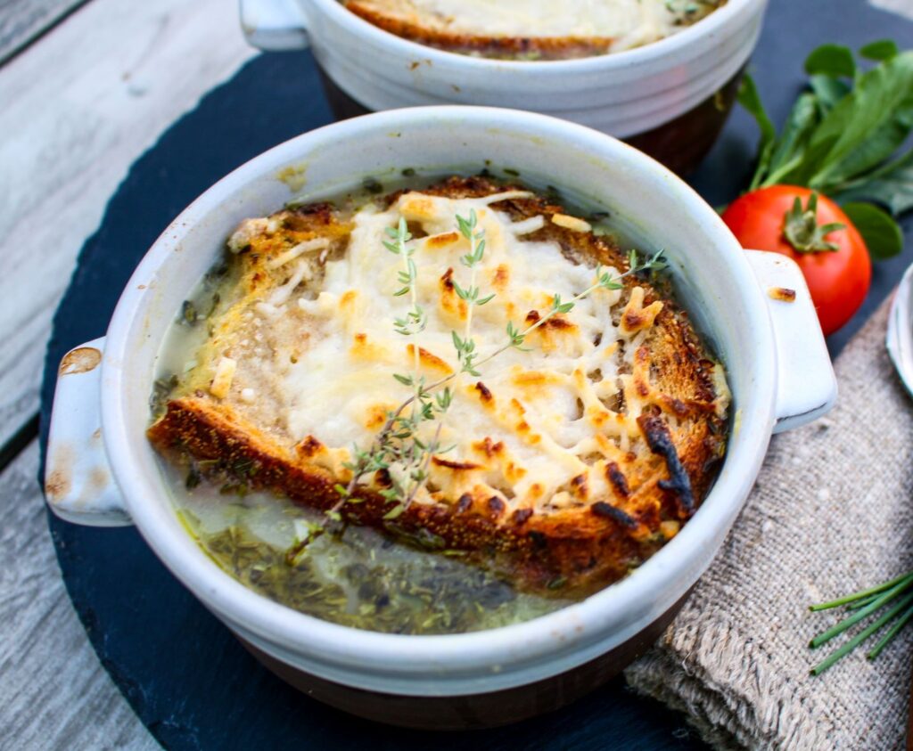 I love to serve this soup in a whole pot on the dining room table, and let people dig and refill their bowls as often as they like. I add a hearty salad to go with this meal (and a good bottle of wine!). You can also prepare this soup individually in oven-proof bowls—baking the bread on top of each bowl to crusty perfection.