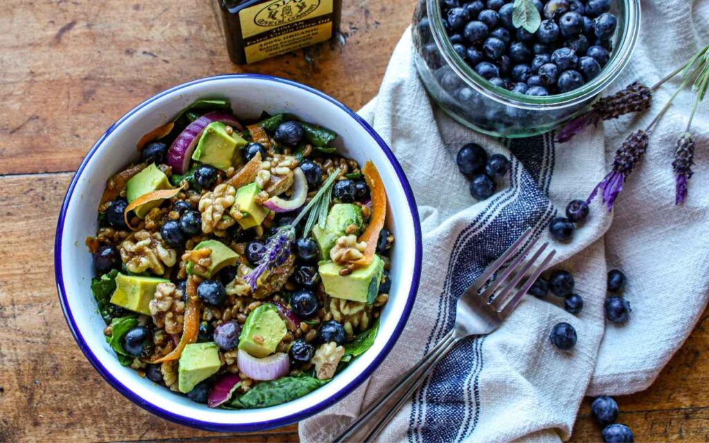 Blueberry Wheatberry Salad with Turmeric Vinaigrette