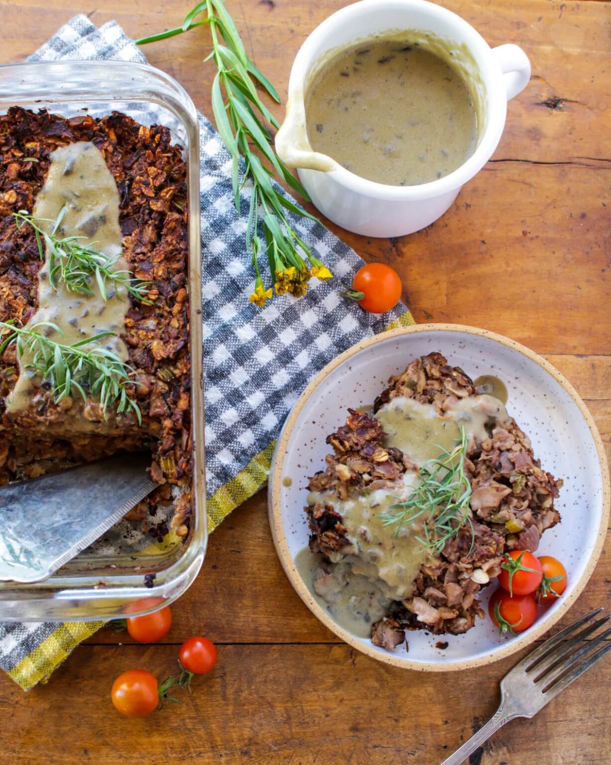 Savory Tarragon Mushroom Loaf with Onion Gravy