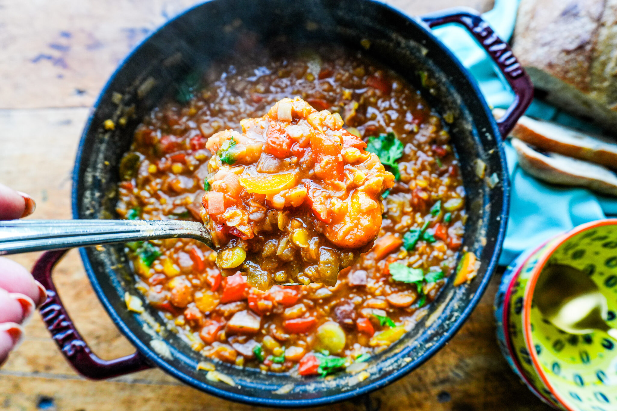 This curried yellow lentil stew is the kind of comforting, nourishing meal that checks all the boxes: easy to make, budget-friendly, and packed with plant-based goodness. Made with yellow lentils, potatoes, carrots, bell pepper, tomatoes, and fragrant Indian spices, it delivers hearty flavor using simple pantry ingredients. Perfect for weeknight dinners, meal prep, or cozy nights in, this healthy vegan lentil stew is naturally gluten-free, rich in fiber and protein, and satisfying without being heavy. If you’re looking for a flavorful, affordable plant-based meal that comes together in one pot, this curried lentil stew is sure to become a favorite.