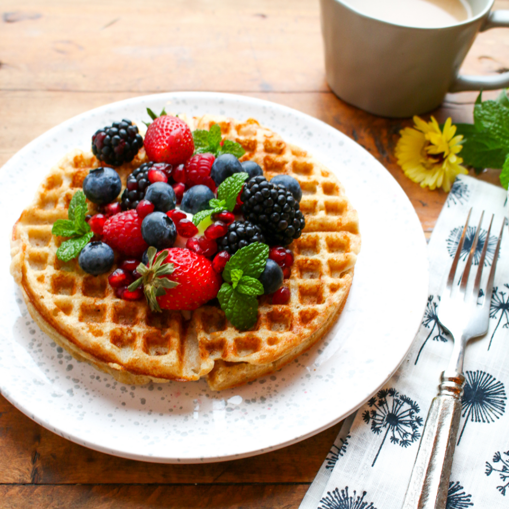 - Serve immediately with fruit, plant-based whipped topping, jam, or syrup, as desired.