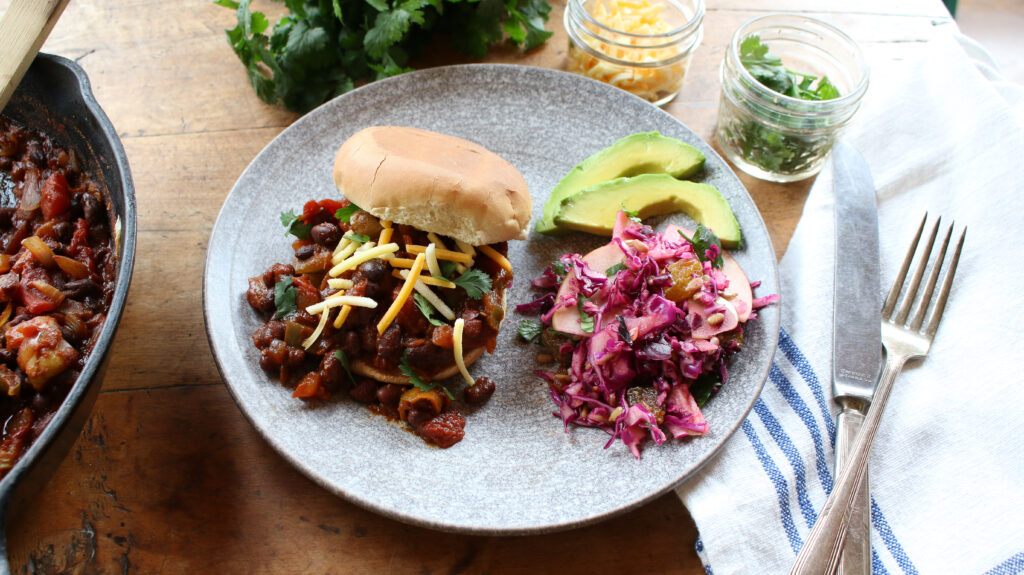 I like to serve it on toasted whole grain buns, but it’s also good on rustic whole grain toast, pasta, or simmered whole grains, such as quinoa, brown rice, or sorghum. You can also swap out black beans for a different type of canned pulse in this recipe, such as lentils, chickpeas, black-eyed peas, or pinto beans. And don’t forget those sloppy joes toppings: avocado, cilantro, green onions, plant-based cheese, and more! What goes with sloppy joes? I really like to accompany sloppy joes with a crisp salad or slaw for a balanced meal. It’s great warmed up the next day, too. This recipe will soon be one of your favorite classic meals in your household.