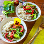 The savory, umami flavors shine through in this 20-minute, 6-ingredient, vegan, gluten-free rice bowl, which features protein-rich edamame, bok choy, bell peppers, and brown rice.