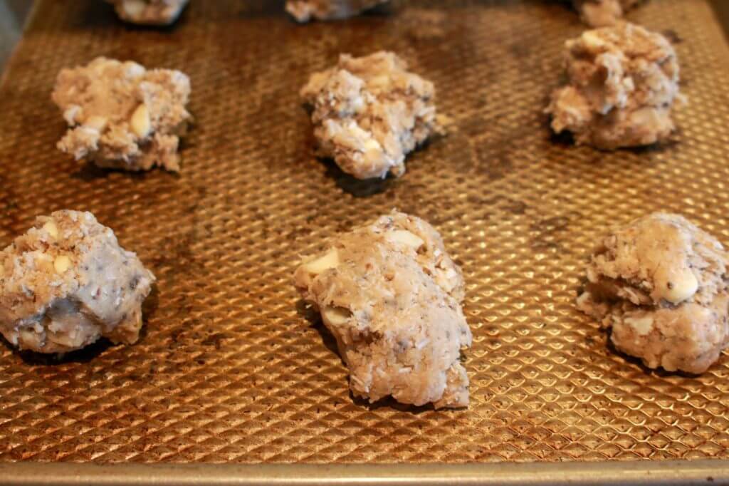 - Scoop heaping spoonfuls of dough onto baking sheets.