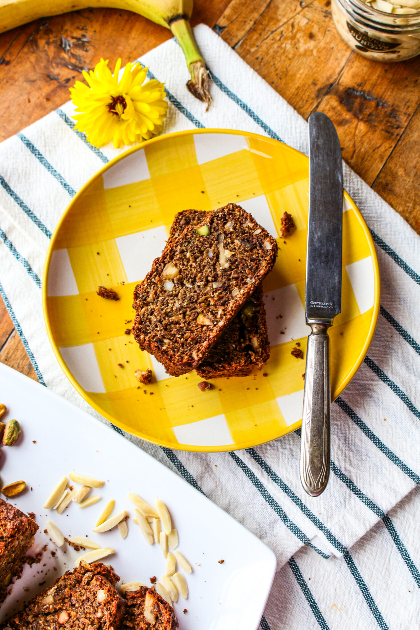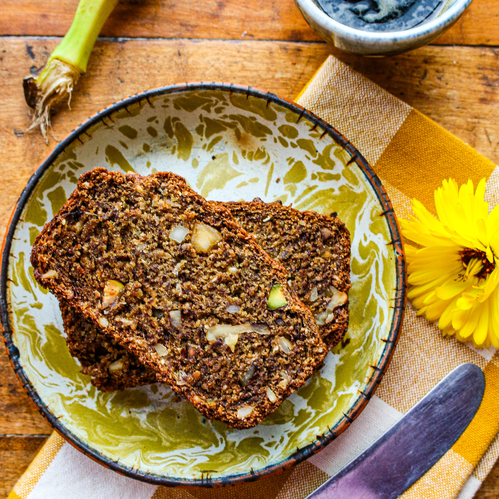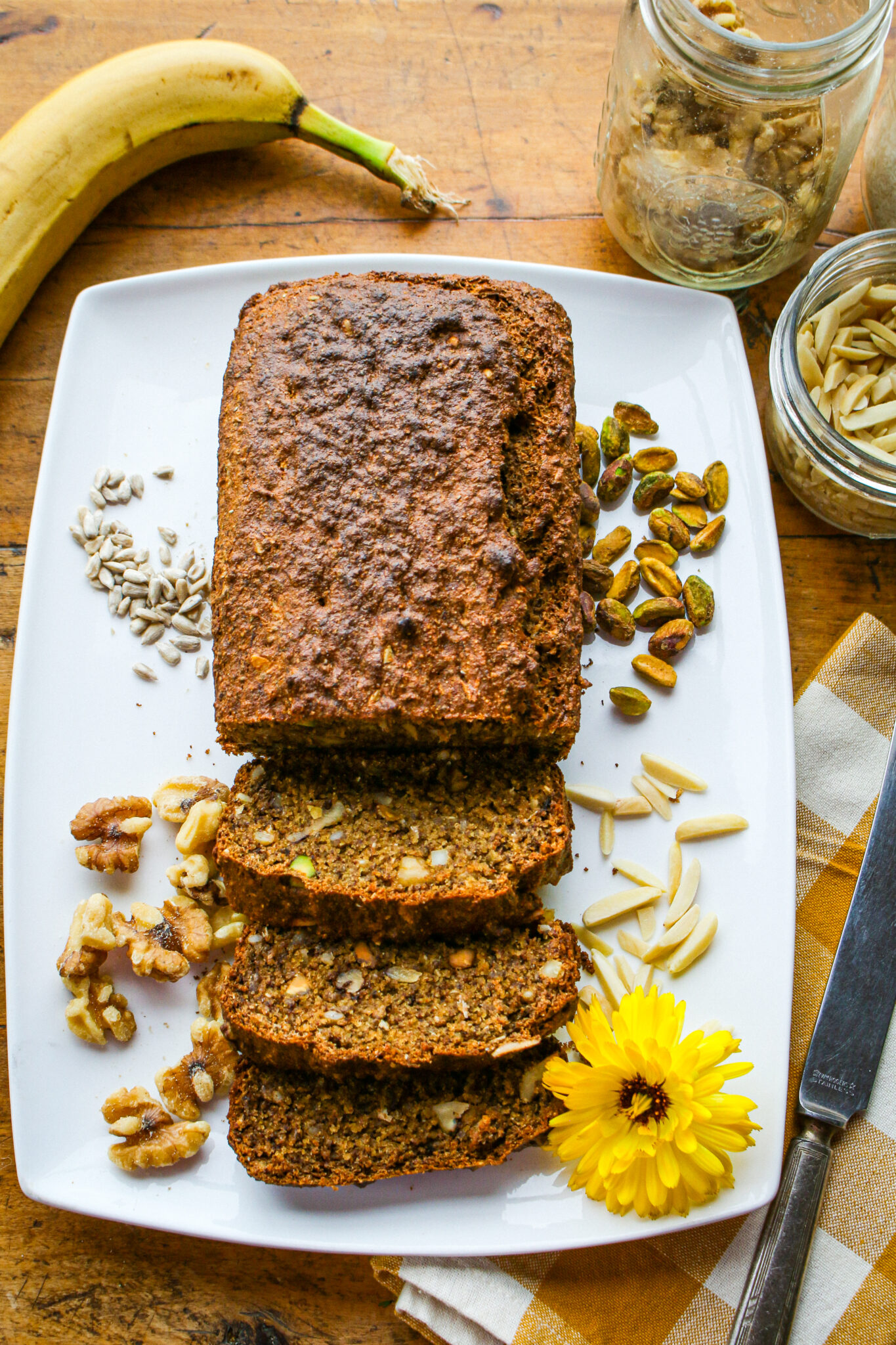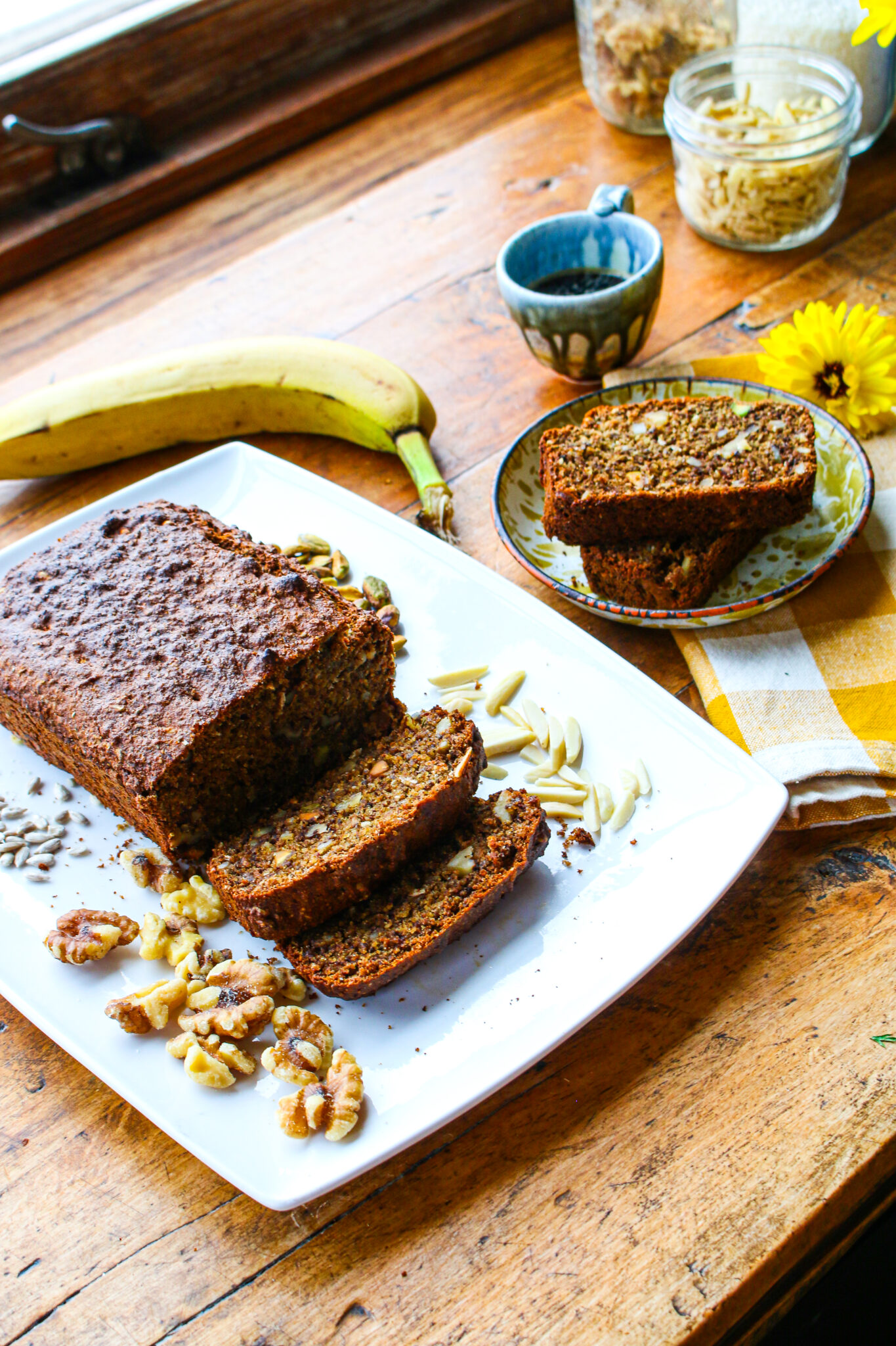 Healthy Vegan Banana Bread with Nuts and Seeds (Low Sugar + Whole Grain)