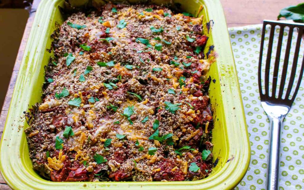 Looking for a cozy, nourishing vegan dinner that’s easy on your budget and packed with flavor? This Vegan Swiss Chard Pecan Lasagna is the perfect comfort food for plant-based eaters and omnivores alike. Layered with tender, nutrient-packed Swiss chard, a rich homemade tomato sauce, and a hearty pecan “meat” mixture that gives each bite a satisfying, meaty texture, this lasagna is pure comfort with a healthy twist. Topped with melty plant-based cheese and baked to perfection, it’s ideal for family dinners, meal prep, or weekend gatherings. Plus, it’s simple to make and full of wholesome ingredients that nourish body and soul. Whether you’re new to vegan cooking or a seasoned pro, this easy vegan lasagna recipe is sure to become a favorite.