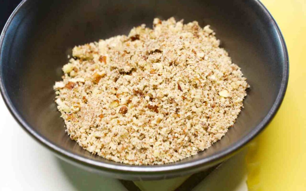 *Grind pecans in a food processor or blender for about 2 seconds, just until finely ground and about the consistency of coarse sand. Alternatively, you can finely chop with a knife.