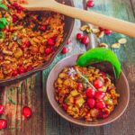 Make a seasonal non rice pilaf dish out of whole grain oats, cranberries, pistachios, and spices. This recipe for Cranberry Oat Pilaf is delicious as a one dish easy side dish for fall, winter, and holidays.
