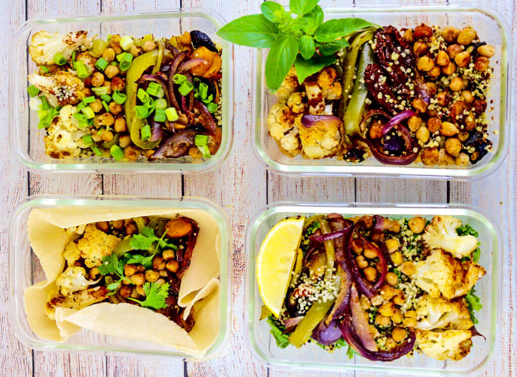 5. Balance Your Meals. Make sure that you have a nice balance of protein, fat, and carbs at each meal. For breakfast that can be 1 cup cooked oats with 1 ounce nuts, 1/2 cup banana slices, and ½ cup soymilk. For lunch it can look like a salad with 2 cups kale, ½ cup chickpeas, 1/5th avocado, ½ cup quinoa, and ¼ cup raisins. And for dinner that can be a stir-fry with 2 cups vegetables, ½ cup tofu, and ½ cup brown rice with a pear for dessert.