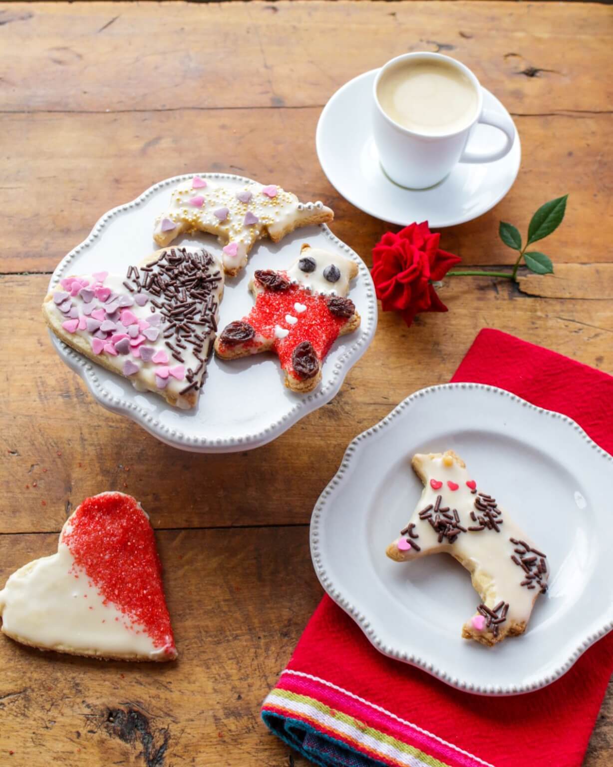 When my children were little I made these vegan sugar cookies for every holiday, rolling out cookies and cutting them into shapes that matched the occasion—Easter, Birthday Parties, Halloween, St. Patrick’s Day, Thanksgiving, Valentines Day, and of course, Christmas. My boys would love to help me decorate the Christmas sugar cookies. I’ve been collecting cookie cutters for years, and inherited some from my mother too. Just make up the dough, chill it for a bit, roll it out, cut into shapes with cookie cutters, and decorate the cookies. I have also been collecting cookie decorations when I travel—many of those featured in my photos here are from trips to Europe, where they have beautiful baking traditions. But you can find cookie decorations anywhere! I love to use raisins, chocolate chips, nuts, seeds (like sunflower seeds or pumpkin seeds), sprinkles, raisins, and coconut. It’s all about using your creativity!