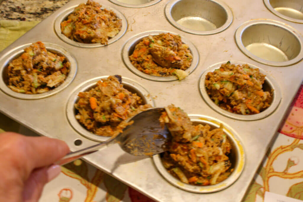 - Spray a muffin pan with nonstick cooking spray or line with muffin papers (sprayed with non stick cooking spray).