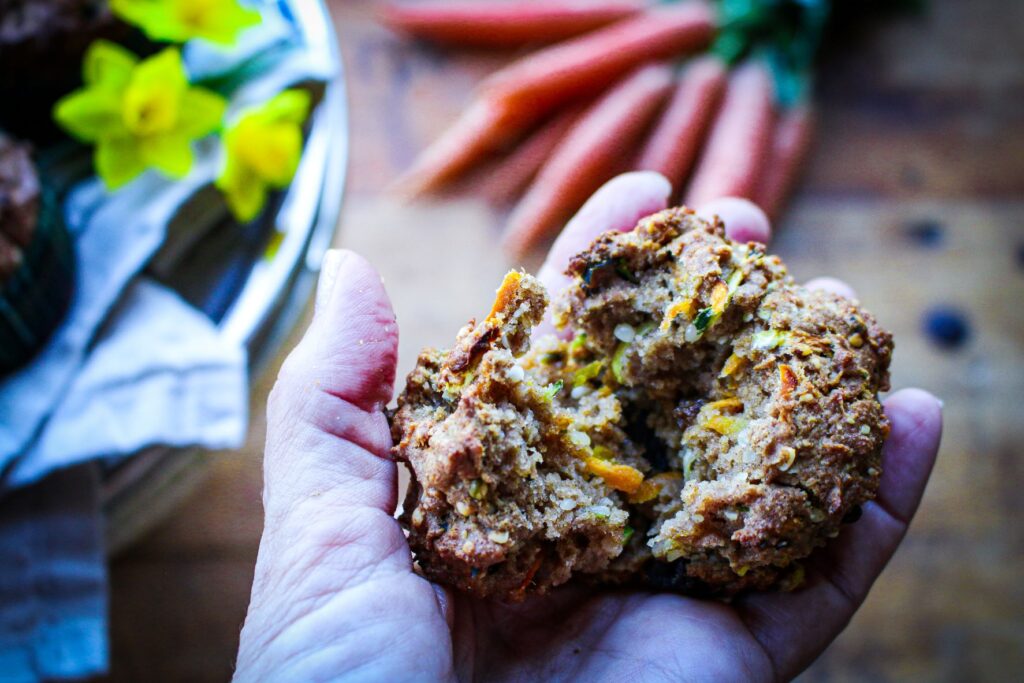 These vegan Zucchini Carrot Spice Muffins are chock full of real veggies, including zucchini and carrots, as well as whole grains, nuts, and seeds.