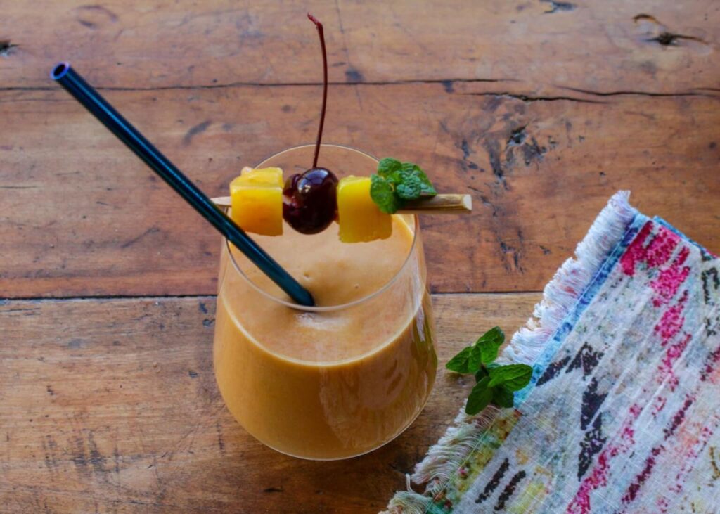 The combination of ingredients gives it a beta-carotene antioxidant rush, plus a tropical flavor and gorgeous shade the color of a Caribbean sunset. Vary the color with the type of carrots you use. For this Caribbean Sunset Protein Smoothie, you can also use heirloom purple carrots to give it an orange-pink shade.