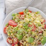 The flavors of the Latin American ingredients cilantro, avocado, corn and tomatoes truly brighten up this nutrient-rich, satisfying Spicy Sorghum Salad with Avocado. This delicious vegan sorghum salad recipe is also gluten free. Just cook up whole grain sorghum, then toss it with veggies, olive oil, lemon juice and seasonings, and you’re ready to go! This hearty, nutritious salad is packed with heart-healthy ingredients. And it’s a good source of protein, fiber, and antioxidant compounds, thanks to these wholesome, plant-based ingredients. Mix it up and enjoy it for lunch or dinner, or in meal prep. I love to serve this salad at picnics and potlucks too. It’s even better the next day!