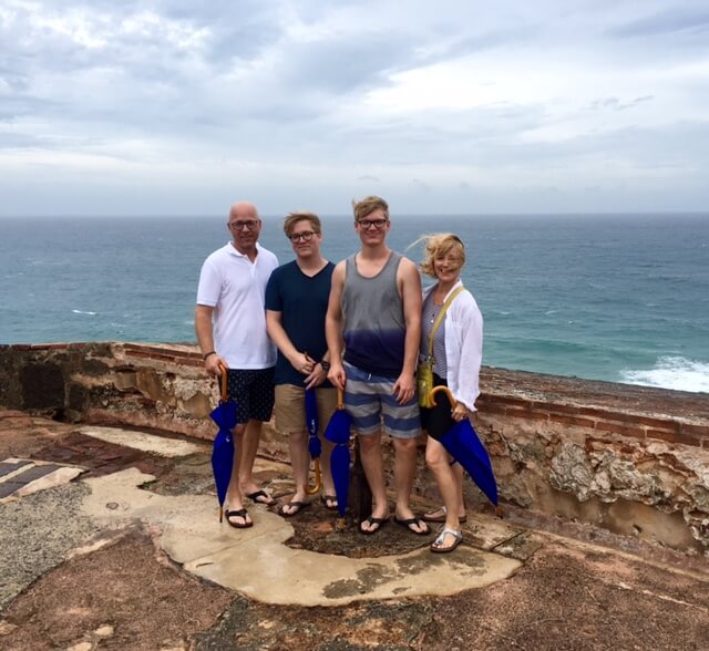 Here I am with my family, on a rainy day in Old San Juan, where we explored the historic fort which walls in the old city and was used to protect it from invading interests for centuries. It’s beautifully maintained and a definite must on your travel list.
