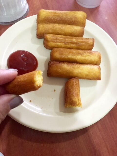 At a local diner in San Juan by our hotel in Isla Verde, I tried these corn sticks—another example of the fried little street foods part of the traditional food scene. They were simply ground corn formed into sticks. Yummy!