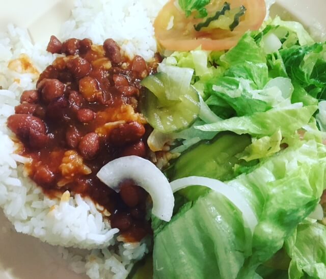 This is another one of my favorite dishes in the Caribbean—just simple beans (prepared in a rich tomato sauce) served with rice and a crisp green salad. I just love the simplicity of this dish!