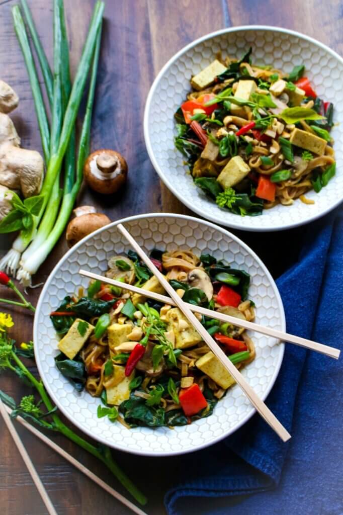 Noodle Bowl with Thai Tofu and Vegetables, Sharon Palmer, MSFS, RDN, The Plant-Powered Dietitian (shown above)