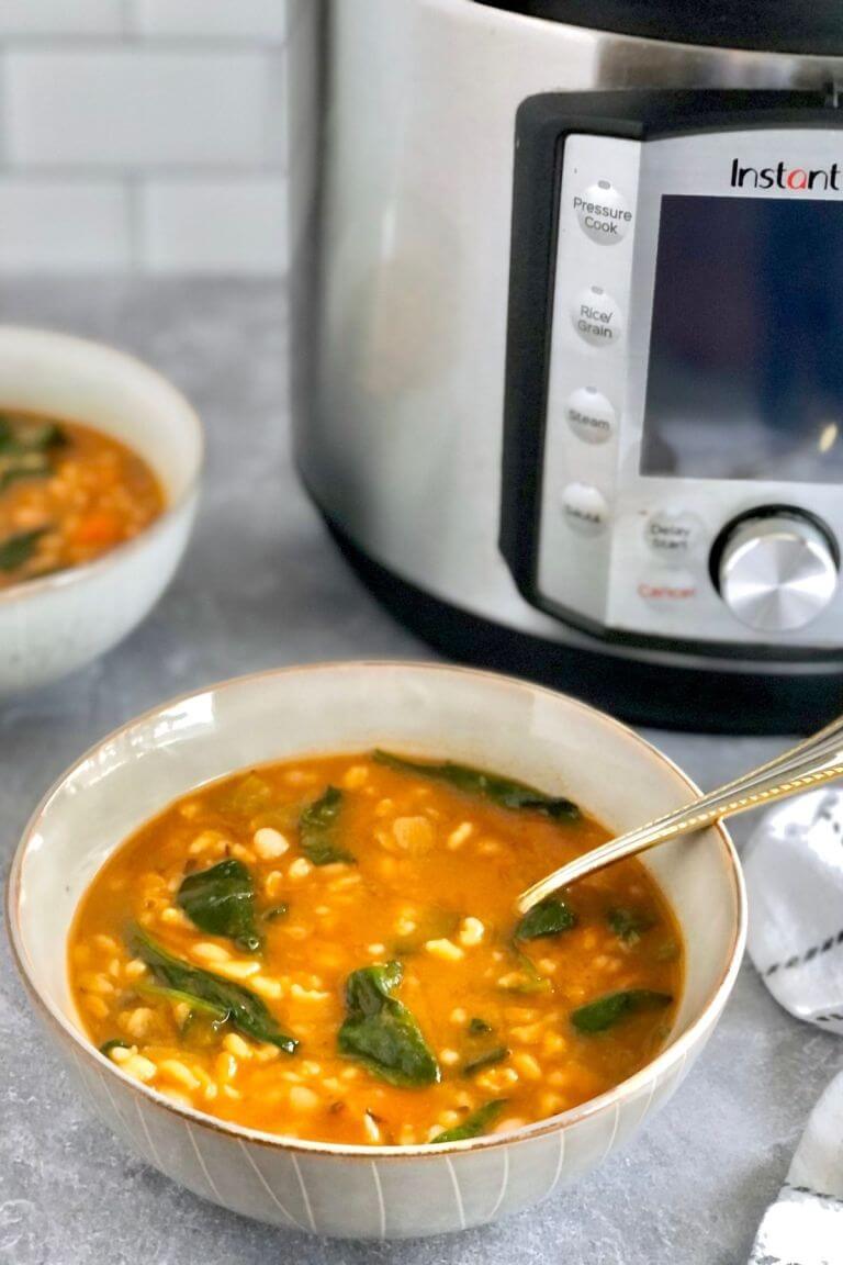 Instant Pot Bean and Barley Soup, Christie Gagnon, RDN, Horrah to Health (shown above)