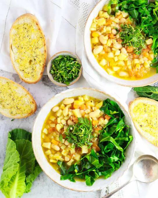 Spring Greens Minestrone Soup with Gremolata, Louise-Claire Cayzer, The Vegan Larder (shown above)