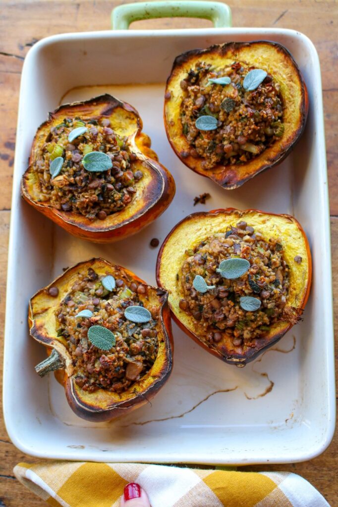 Stuffed Squash with Sage Lentils and Wheat, Sharon Palmer, MSFS, RDN, The Plant-Powered Dietitian (shown above)