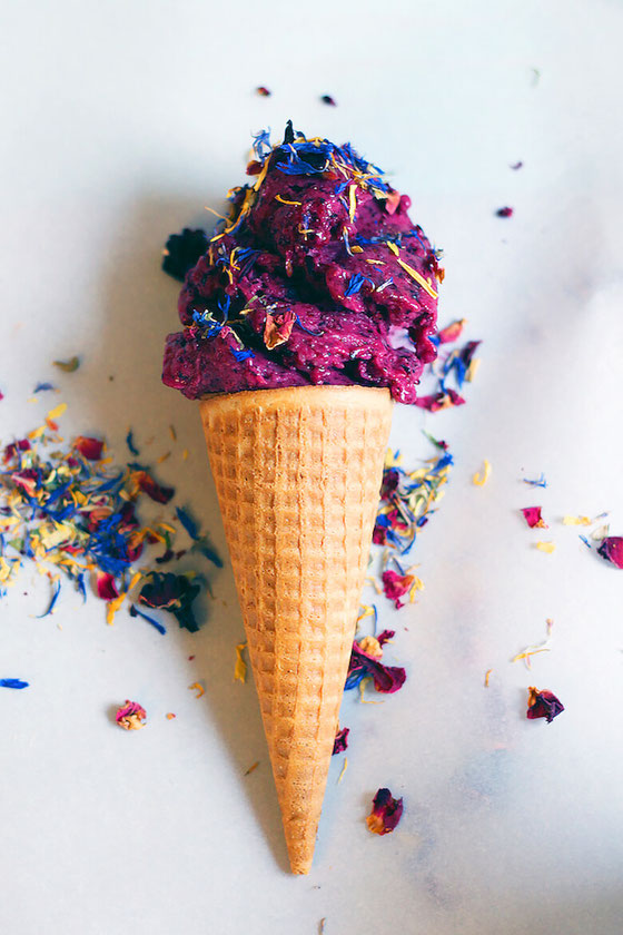 Blueberry Nice Cream with Edible Flowers, Amy Gorin Spector, Amy Gorin Nutrition (shown above)