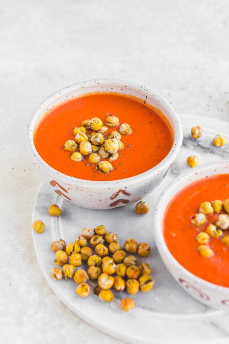 Creamy Tomato & Red Pepper Soup with Basil Chickpeas, Caitlin Shoemaker, From My Bowl (shown above)
