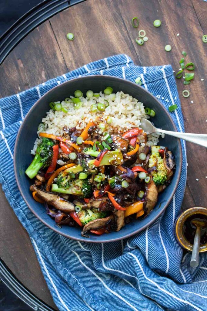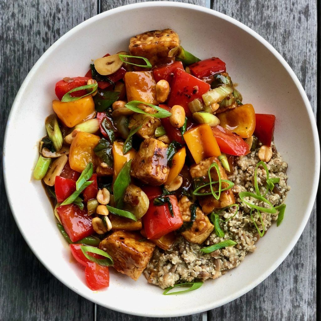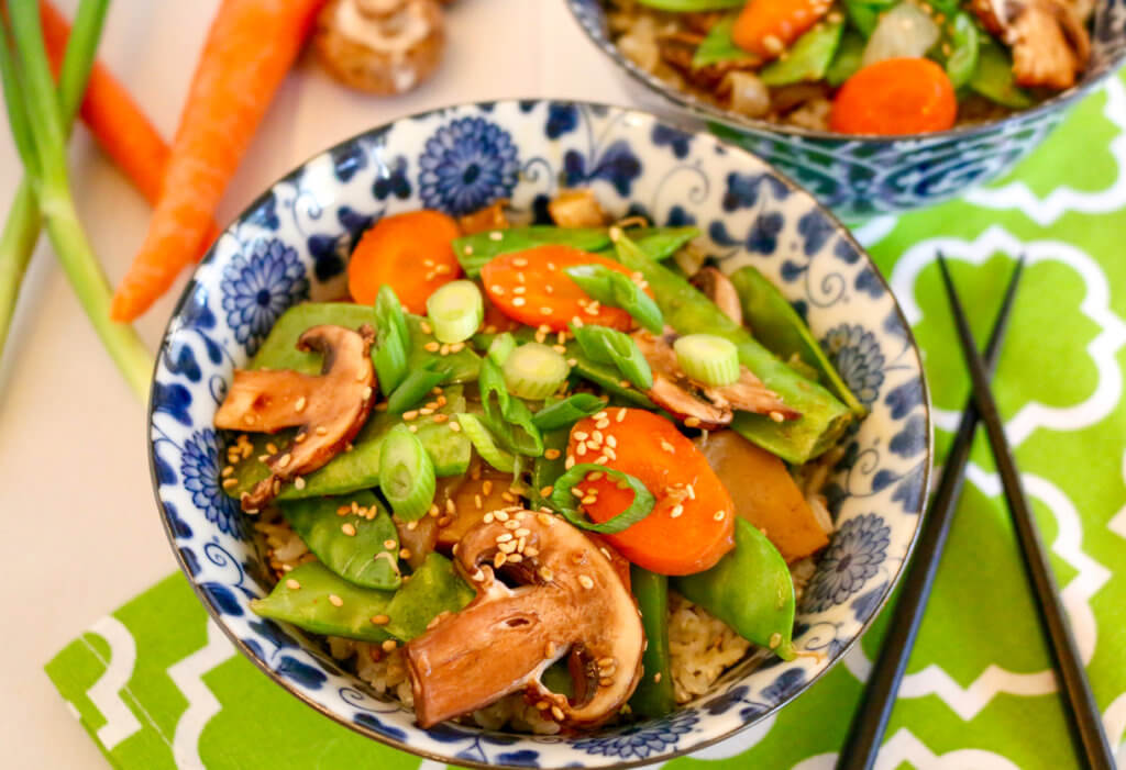 Is there anything better than a flavorful, colorful stir-fry recipe to get dinner on the table quick and easy? All you need is just one skillet (or saucepan or wok) to prepare and serve your delicious stir-fry, and you’re set. You can use fresh veggies on hand, a healthful plant-based protein, such as tofu, tempeh, seitan, or pulses, and a savory sauce to create a stir-fry to serve over cooked whole grains like brown rice, quinoa, or sorghum and you are ready to dive into a satisfying, nutritious plant-powered meal. The leftovers aren’t shabby either! One of the great things about stir-fries is that you lightly prepare those crisp vegetables, so the nutrition value is preserved, along with their crunchy textures. And you can really up your intake of healthy veggies in this meal—a good thing for health and taste. This simple preparation style is good for so many recipes, from classic Chinese-inspired vegetable stir-fries to Thai peanut-infused noodle dishes. That’s why I asked some of my favorite bloggers to share their own favorite plant-based stir-fry recipes, and wow did they deliver! These colorful, savory recipes are packed with flavor and health. Grab your skillet and try one of these recipes tonight!