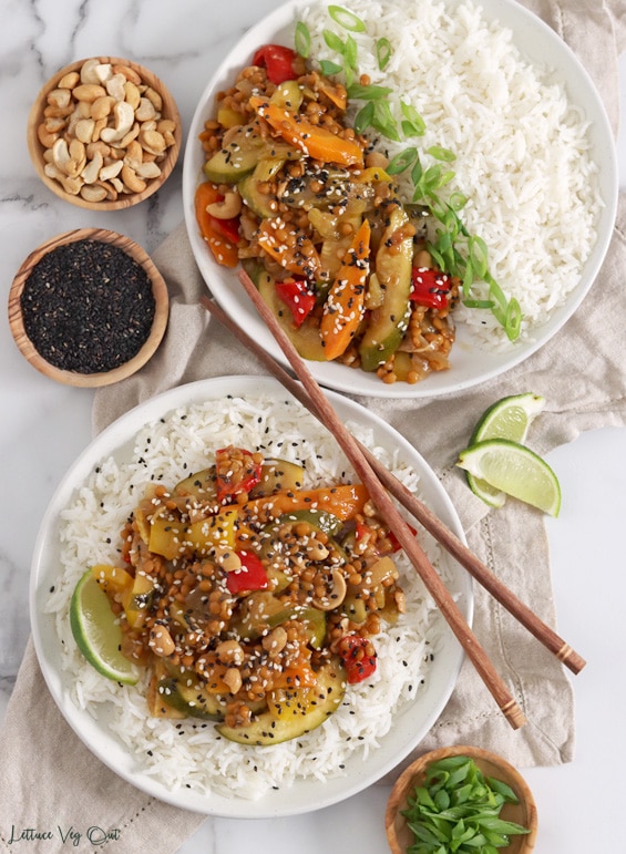 Lentil Stir Fry, Nicole Stevens, MSc, RD, Lettuce Veg Out (shown above)