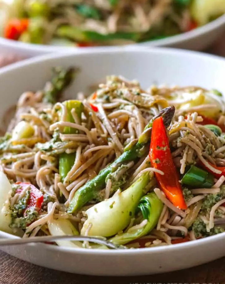 Stir Fried Soba Noodles with Pesto, Olya Cznc, Healthy Taste of Life (shown above)