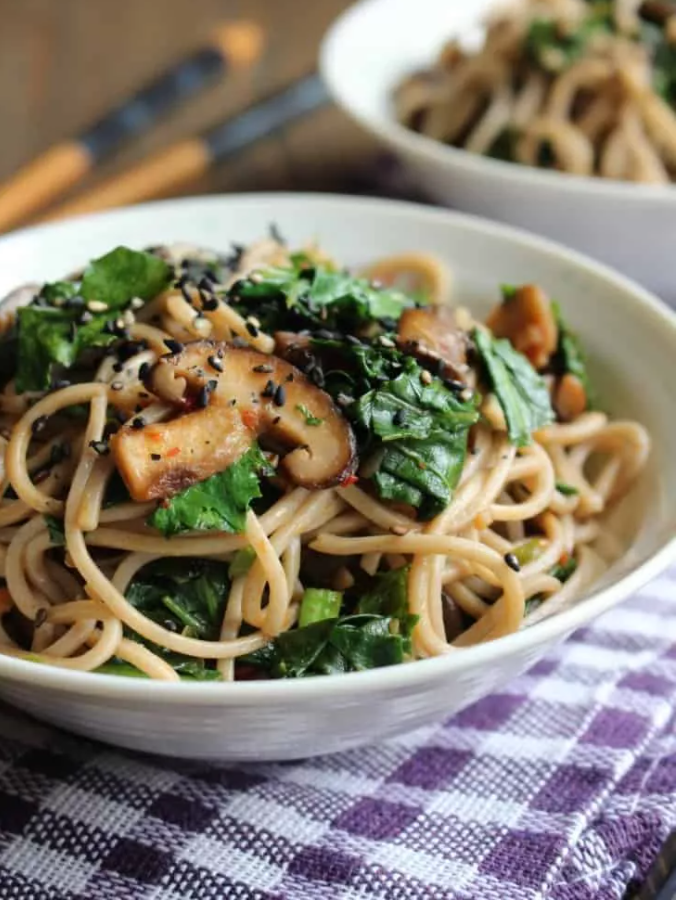 Kale & Soba with Garlic Butter Mushrooms, Caitlin Self, Frugal Nutrition