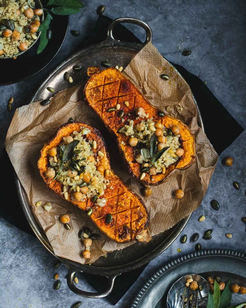 Chickpea and Sage Stuffed Butternut Squash, Louise-Claire Cayzer, The Vegan Larder (shown above)