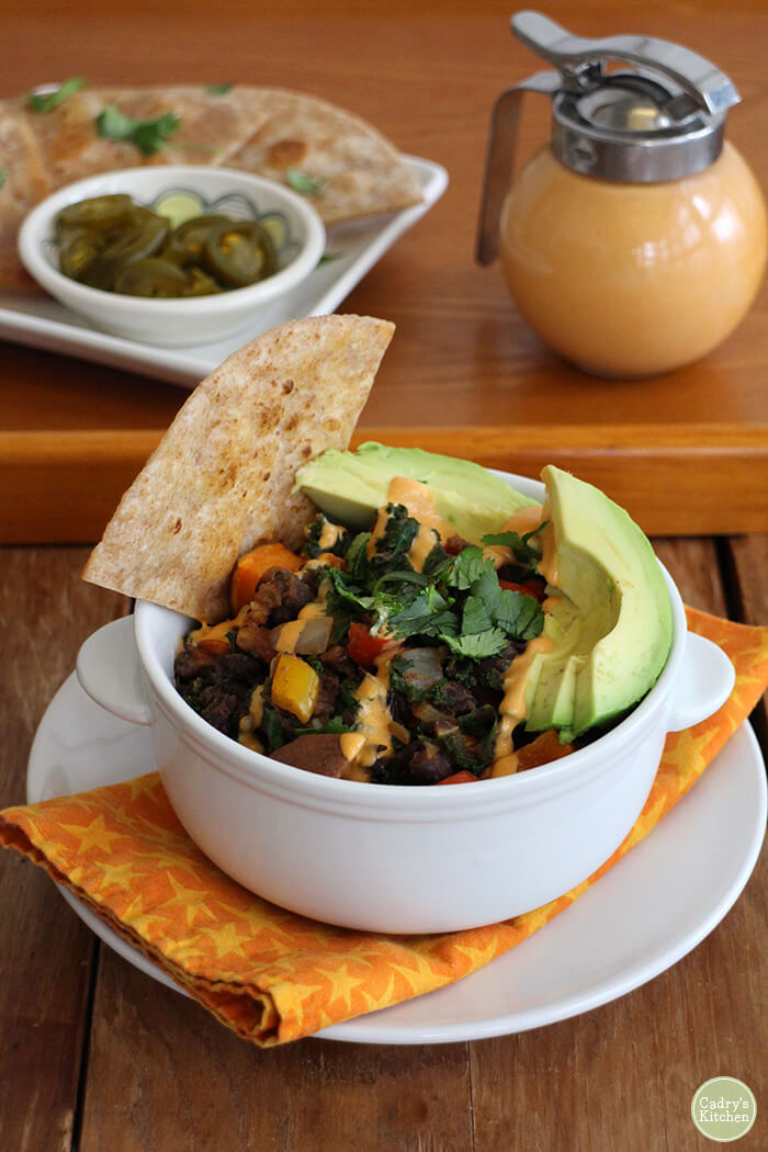 Sweet Potato & Black Bean Hash with Chipotle Crema, Cadry Nelson, Cadry’s Kitchen (shown above)