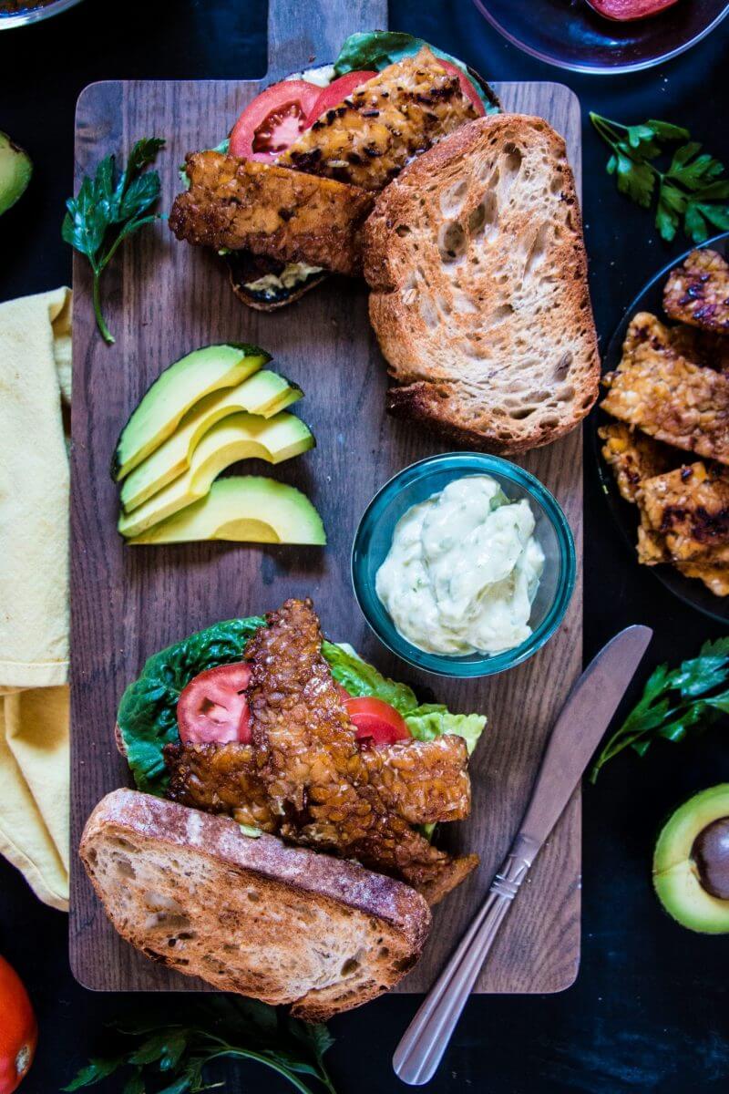 Tempeh Bacon Lettuce, and Tomato with Avocado Mayo, Steven Seighman, The Nut-Free Vegan (shown above)