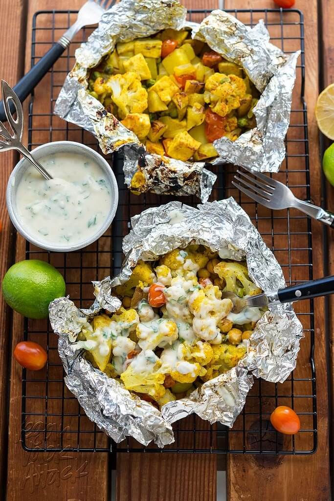 Cauliflower Grill Packets with Yogurt Sauce, Jackie Sobon, Vegan Yack Attack (shown above)