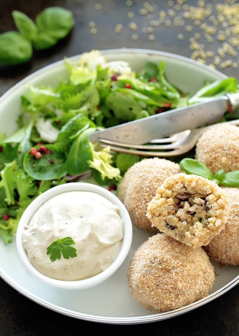 Olive and Caper Stuffed Millet Balls, Evi Oravecz, Green Evi (shown above)