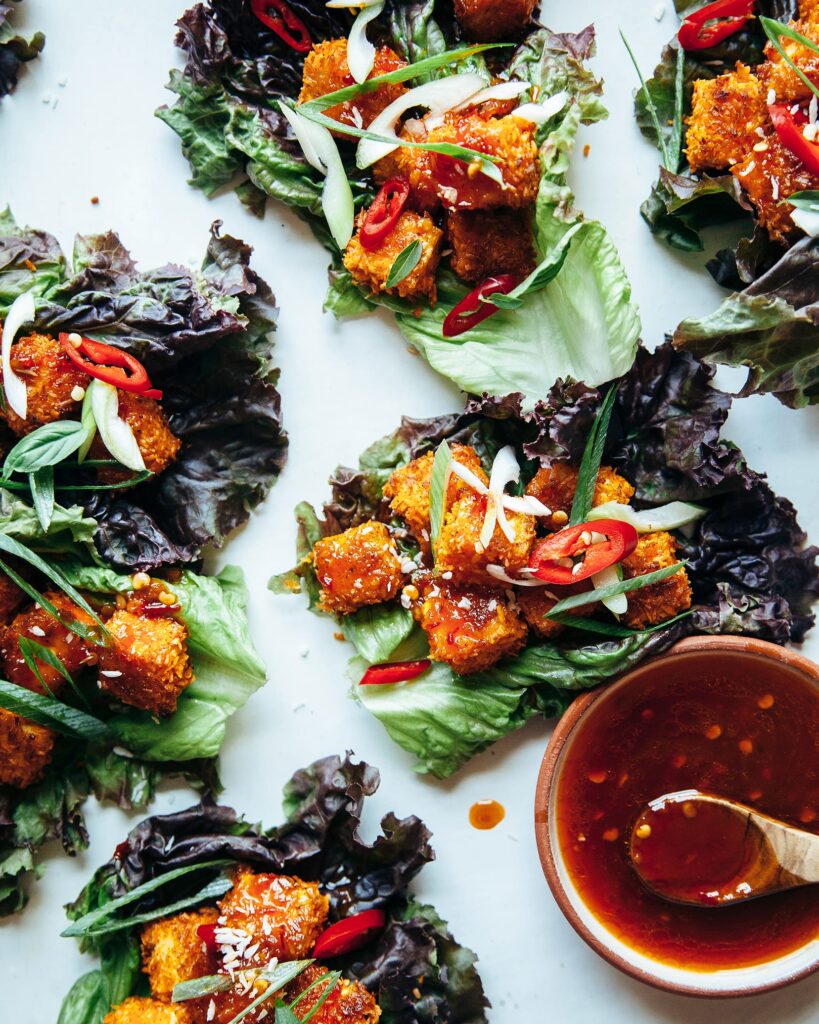 Crispy Coconut Tofu Lettuce Wraps with Sweet Chili Sauce, The First Mess (shown above)