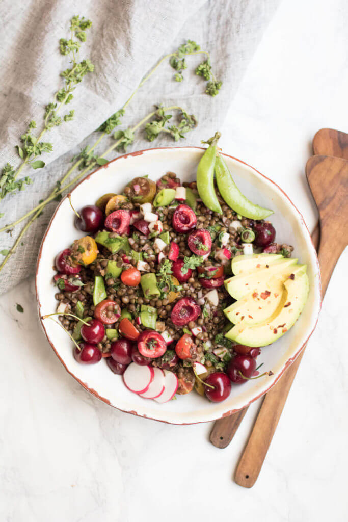 Summer is the season for salads! Gone are the days (thankfully!) of boring iceberg wedges and flavorless green curly leaf tosses. Today, plant-powered salads are all about bold vegetables, flavors, textures, and nutrition. Some of my favorite salad ingredients include pungent greens like kale and arugula, hearty pulses like chickpeas and lentils, sweet fruits like berries and cherries, crunchy veggies like cauliflower and snow peas, and a sassy vinaigrette using rich spice and herb blends. I asked some of my favorite food bloggers to share their best plant-powered summer salad ideas in this frenzy of recipes. I’m sharing some of my favorite salad recipes, too. Toss up these 45 Plant-Based Summer Salad Recipes all summer long and reap the flavor and health rewards.