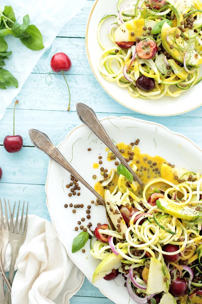 Spiralized Zucchini, Cherry, and Lentil Salad, Evi Oravecz, Green Evi (shown above)