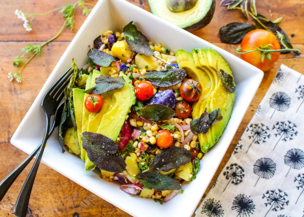 Grilled Corn and Potato Salad with Crispy Sage, Sharon Palmer, MSFS, RDN, The Plant-Powered Dietitian (shown above)