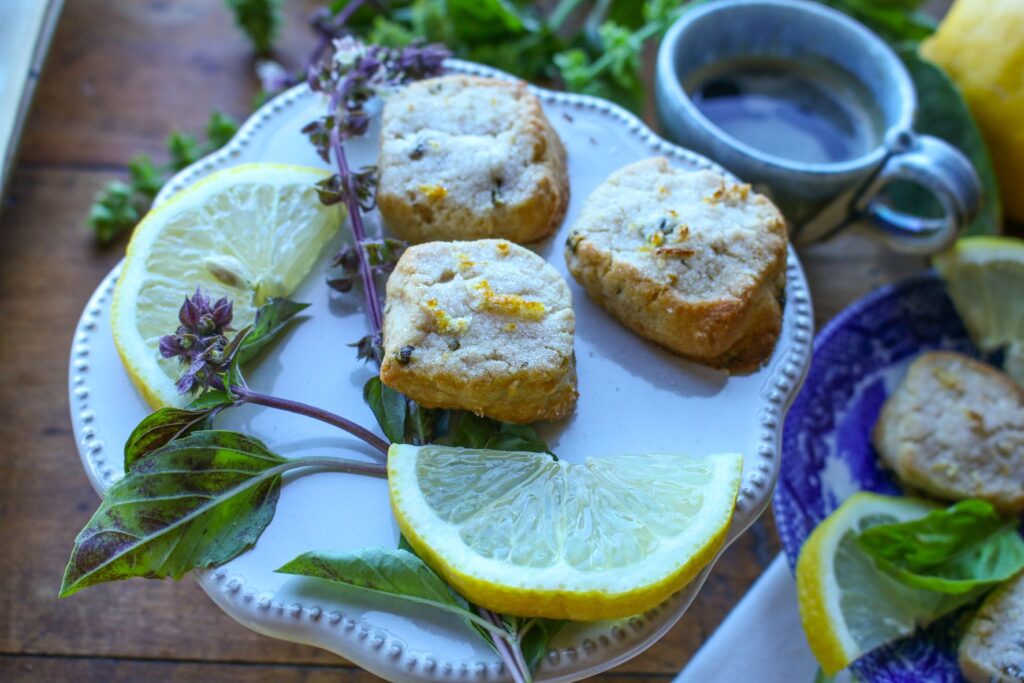 Vegan Lemon Shortbread Cookies with Basil