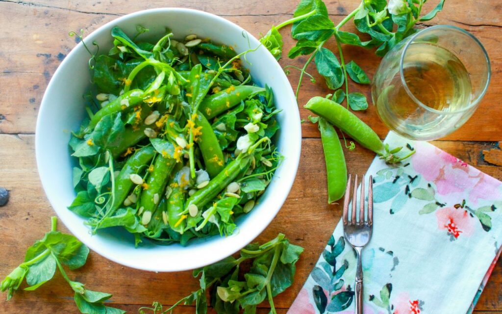 Use the whole pea plant when you make a spring salad, such as pea tendrils—the vines, stems and flowers from green pea plants—as well as the snap peas in this delicious, gorgeous recipe for Spring Salad with Pea Tendrils, Snap Peas, and Lemon Vinaigrette.