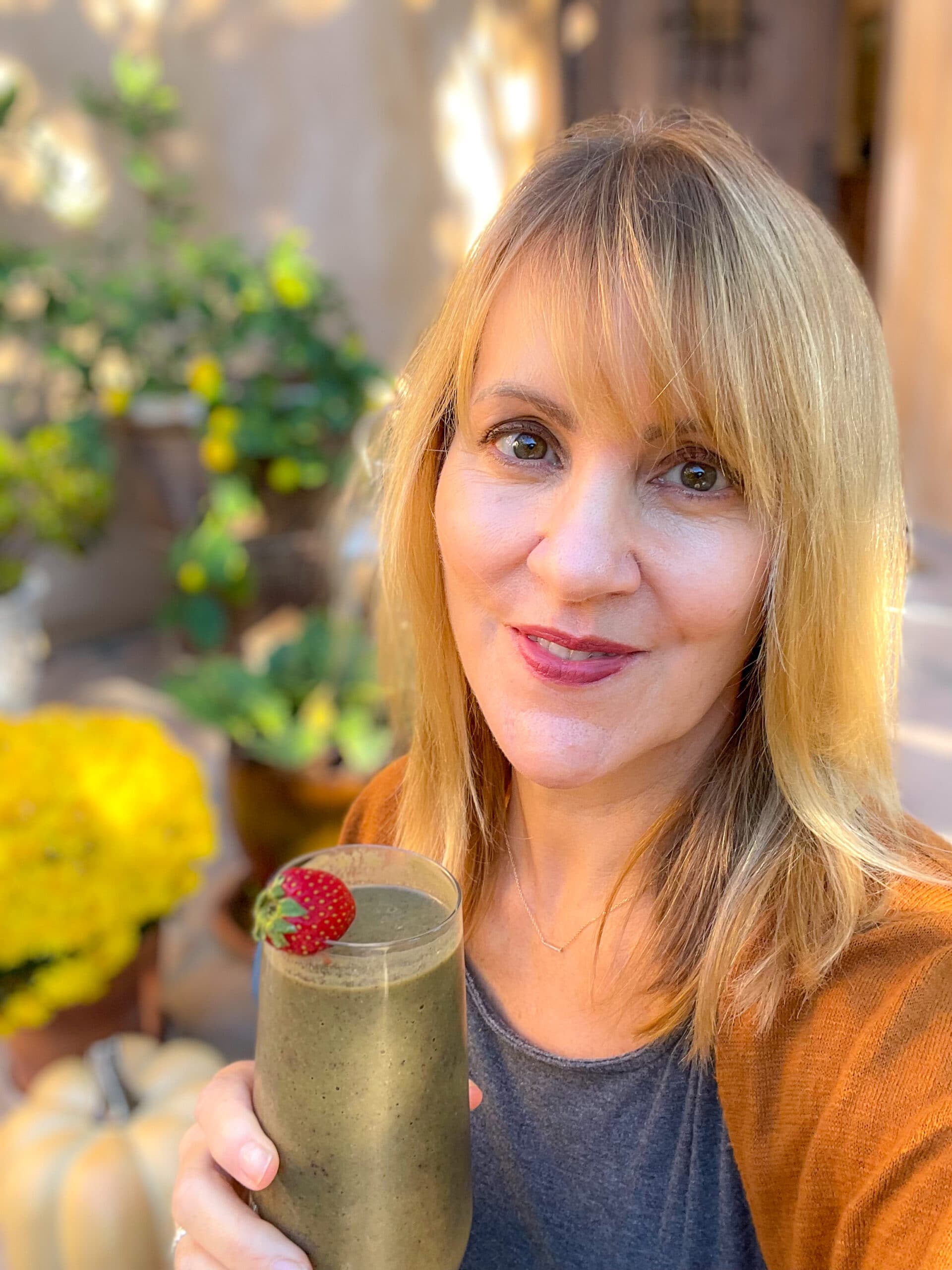 Sipping my daily antioxidant smoothie at home. Watch me make this recipe in my Instagram video here.