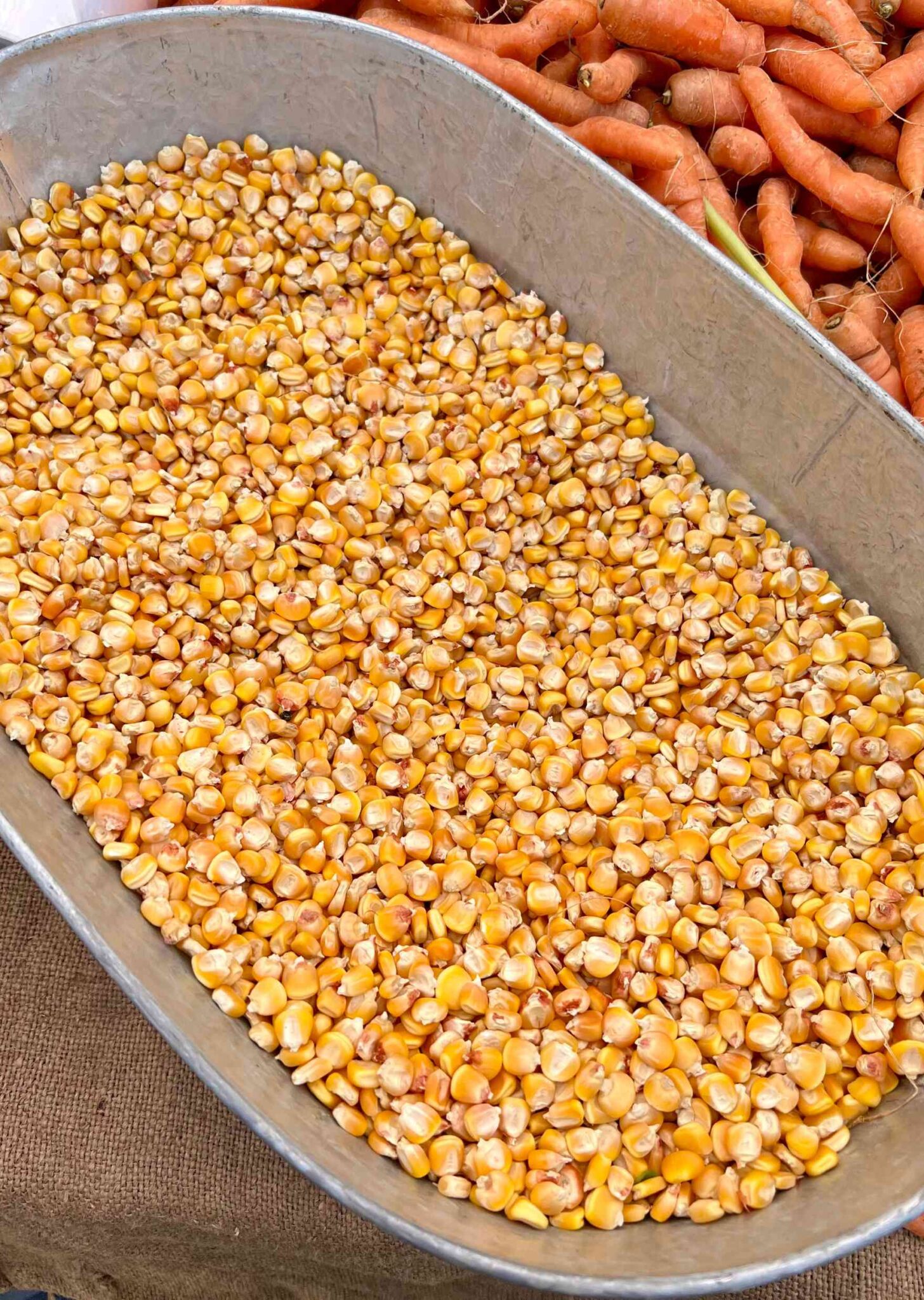 Dried flint corn for sale at the Ojai farmers market. I used this corn in this recipe for polenta, but you can use store bought polenta too.