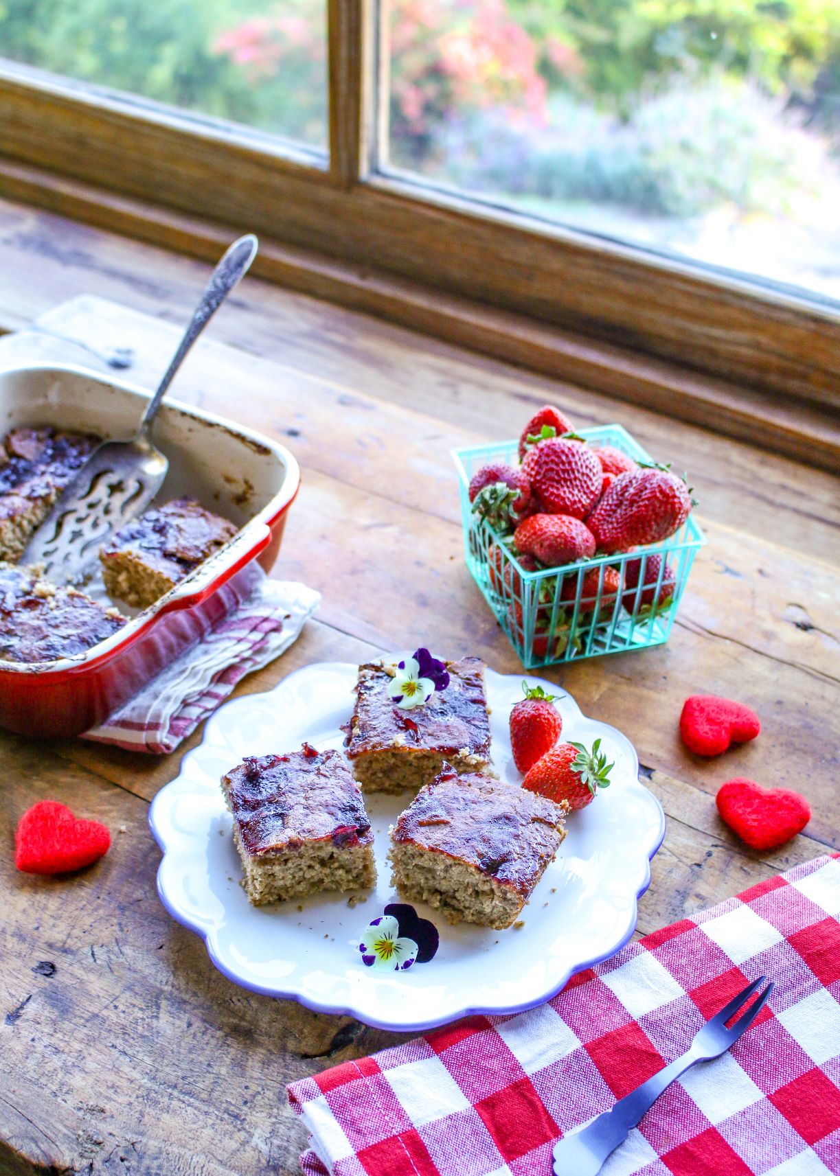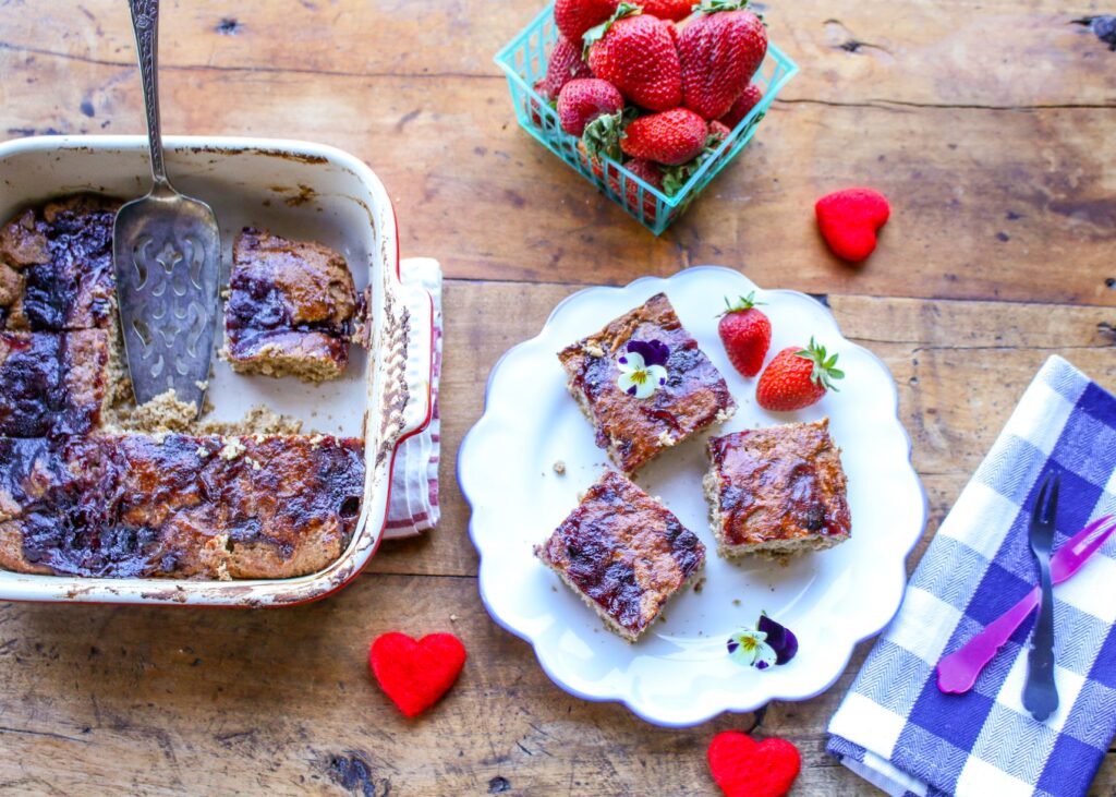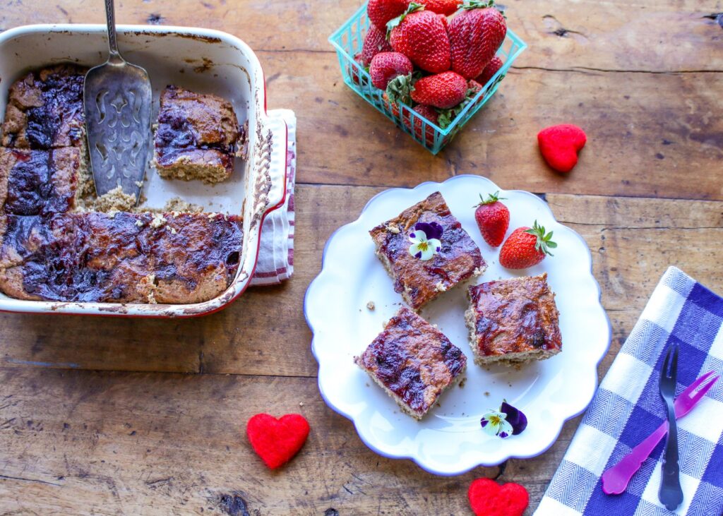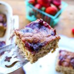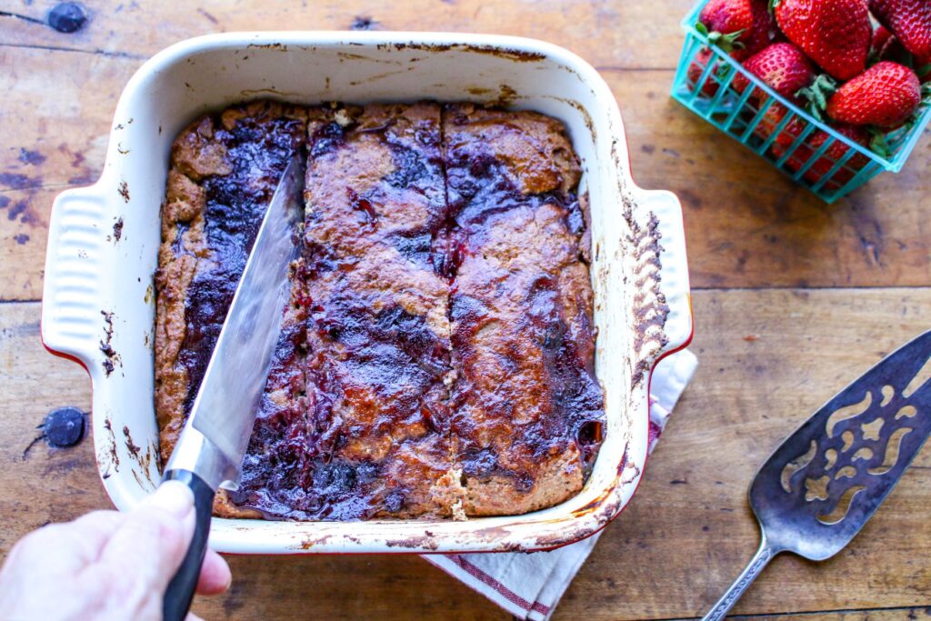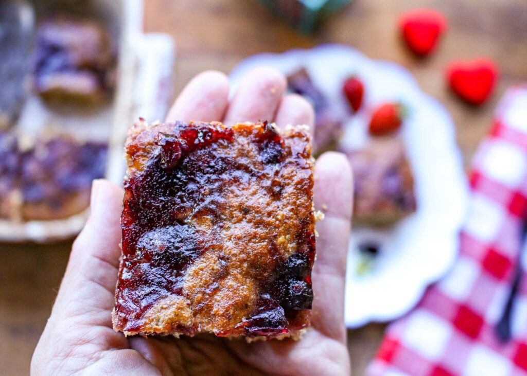- Remove from oven and let cool for about 10 minutes. Slice into 9 bars.