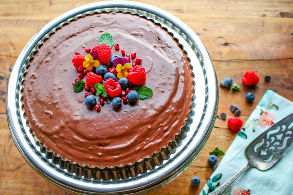 - Garnish as desired with berries, edible flowers, and chocolate shavings.