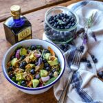 This simple, ultra nutritious Blueberry Wheatberry Salad with Turmeric Vinaigrette is packed with the goodness of blueberries, wheatberries, spinach, avocados, walnuts, carrots and a fresh turmeric vinaigrette.