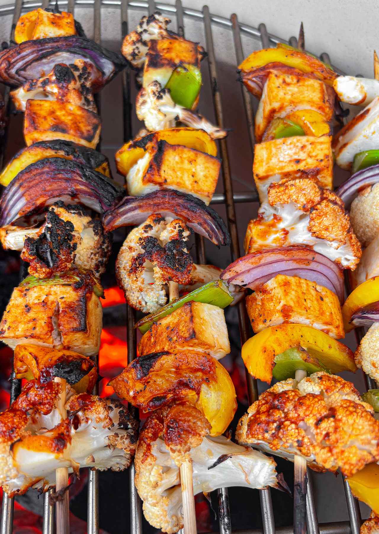 Make the best Buffalo Cauliflower Tofu Skewers for a fresh and healthy grill meal. Just whip up a buffalo sauce, then thread cauliflower, celery, peppers, onions and tofu on metal or bamboo skewers and get to grilling!