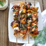 Make the best Buffalo Cauliflower Tofu Skewers for a fresh and healthy grill meal. Just whip up a buffalo sauce, then thread cauliflower, celery, peppers, onions and tofu on metal or bamboo skewers and get to grilling!